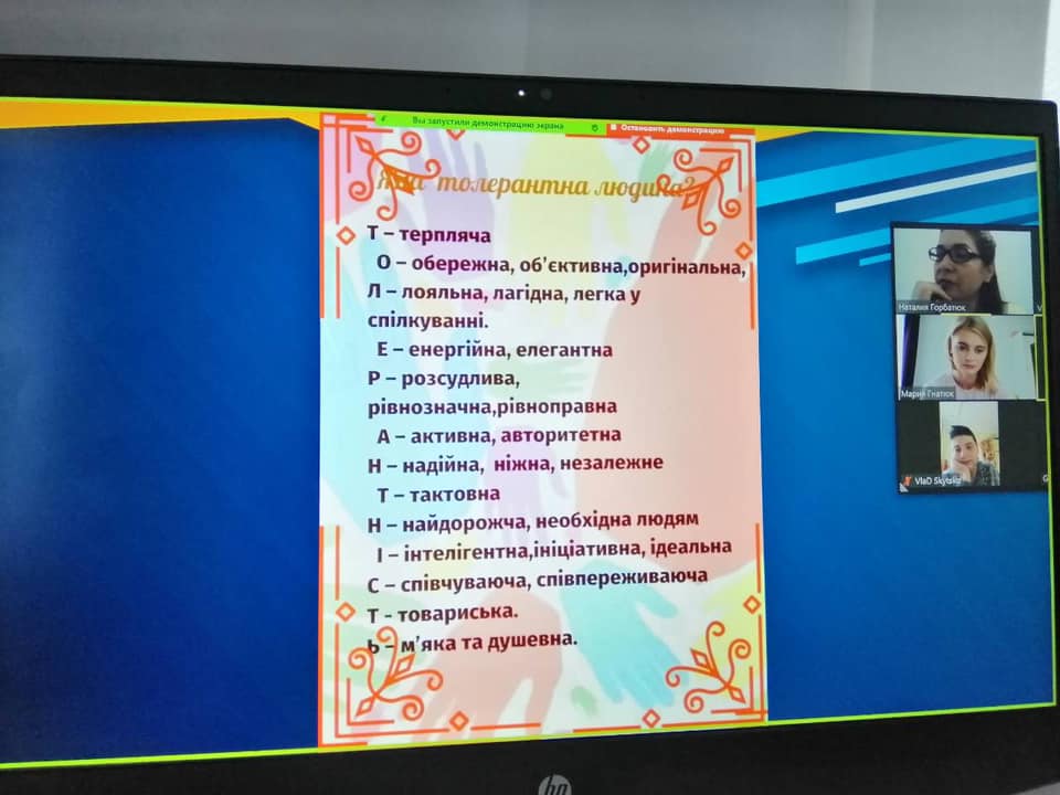 З учнями середньої та старшої ланки була проведена конференція, під час якої учні мали змогу взяти участь в обговоренні важливої, для сучасного світу, теми. Також, всі активно ділились розповідями з власного життя, де вони проявляли толерантне ставлення до оточуючих.